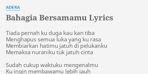 Bahagia Bersamamu Lyrics By Adera Tiada Pernah Ku Duga